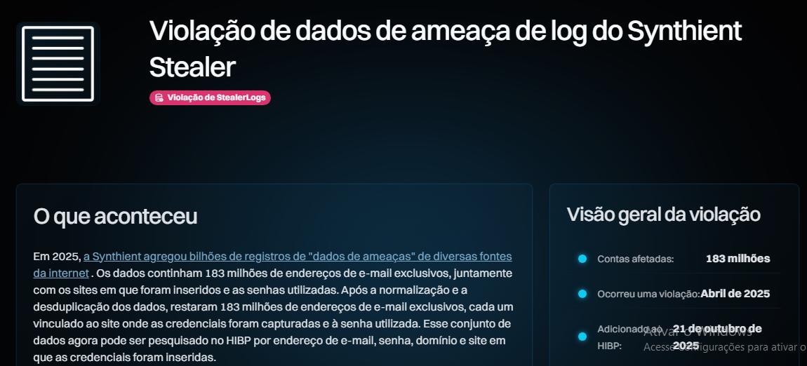 O vazamento teria ocorrido em abril deste ano, mas só veio à tona agora, após os dados serem coletados pela Synthient, plataforma de segurança cibernética. Por conta da grande quantidade de informações a serem processadas, a empresa repassou o vasto material ao Have I Been Pwned, site que acompanha ataques hackers.