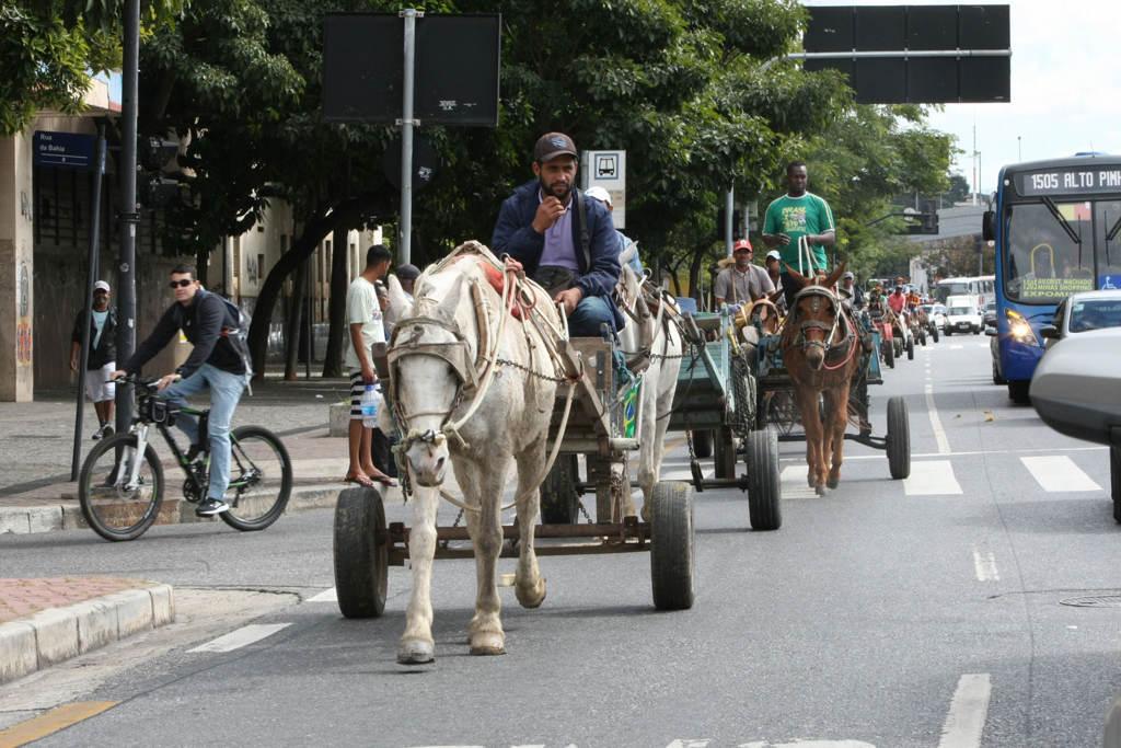 Dezenas de carroceiros realizaram protesto por ruas e avenidas de Belo Horizonte, no início da tarde desta sexta-feira (14), para mostrar repúdio ao Projeto de Lei (PL) que proíbe o uso de tração animal na cidade. Os trabalhadores acreditam que, se sancionada, a lei decretará o fim da categoria.