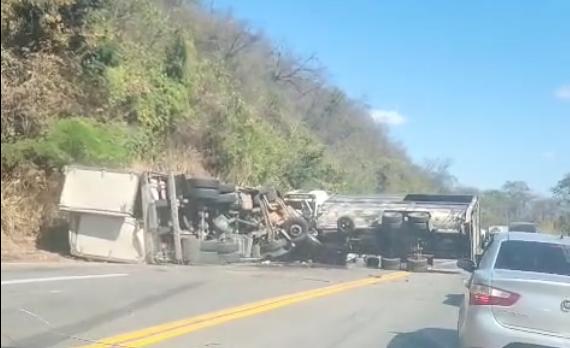 Por conta da colisão, a rodovia foi totalmente fechada em ambos os sentidos e está sem previsão de liberação.