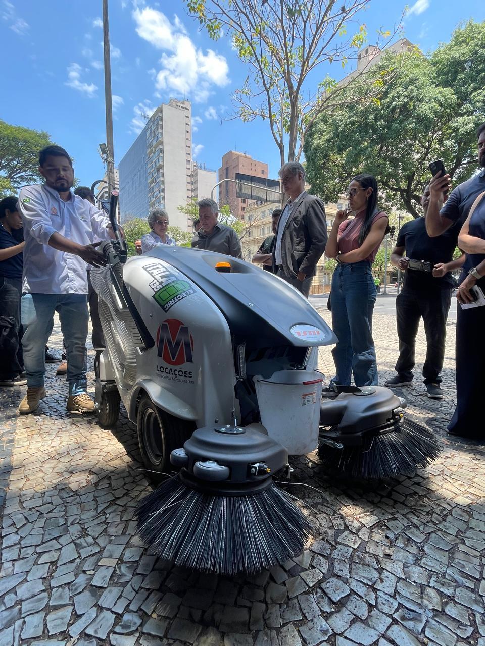 Um novo equipamento de varrição 100% elétrico foi testado pela Superintendência de Limpeza Urbana (SLU) nesta quarta-feira (29), no Centro de Belo Horizonte. A varredeira elétrica, que custa R$ 300 mil, tem capacidade de recolher 40 toneladas de lixo por dia e pode substituir de 10 a 12 garis em um período de oito horas trabalhadas.