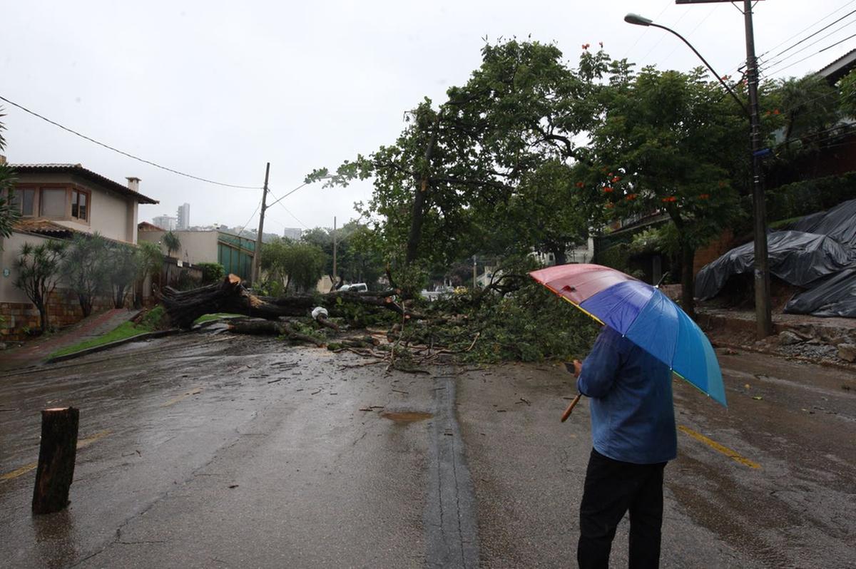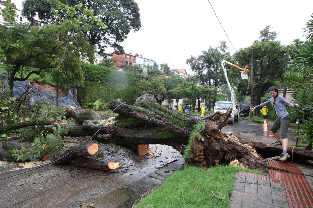 A forte chuva na manhã desta sexta-feira (9) já causa transtornos para motoristas em Belo Horizonte. Na avenida Raja Gabaglia, a queda de uma árvore atrapalha o trânsito no sentido BH Shopping. Segundo a BHTrans, o trânsito no local está em meia pista.