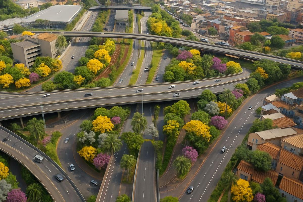 Para dar vida à proposta, o Instituto usou imagens reais das avenidas e as combinou com inteligência artificial generativa. A ferramenta de IA foi instruída a adicionar nas imagens "florestas com diversos ipês, palmeiras, jacarandás e várias outras árvores nativas e adaptadas à região", criando uma visualização poderosa do potencial de transformação.