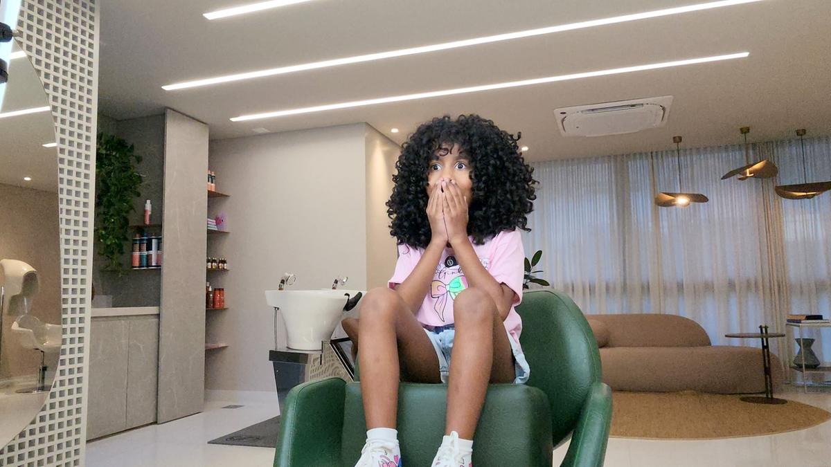 “Eu sabia que no vídeo, ao puxar a capa, a criança iria aparecer pronta por causa da edição. Então, comecei a fazer essa brincadeira. Mas, na verdade, a mágica acontece a partir do momento em que a pessoa se olha no espelho”, afirma a cabeleireira.